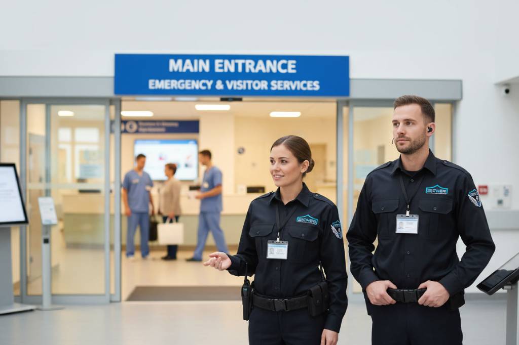 Professionelle Sicherheitsdienstleistungen für Krankenhäuser, Kliniken und psychiatrische Einrichtungen zur Gewährleistung der Sicherheit von Personal, Patienten und Besuchern – unter Wahrung einer ruhigen und respektvollen Atmosphäre.